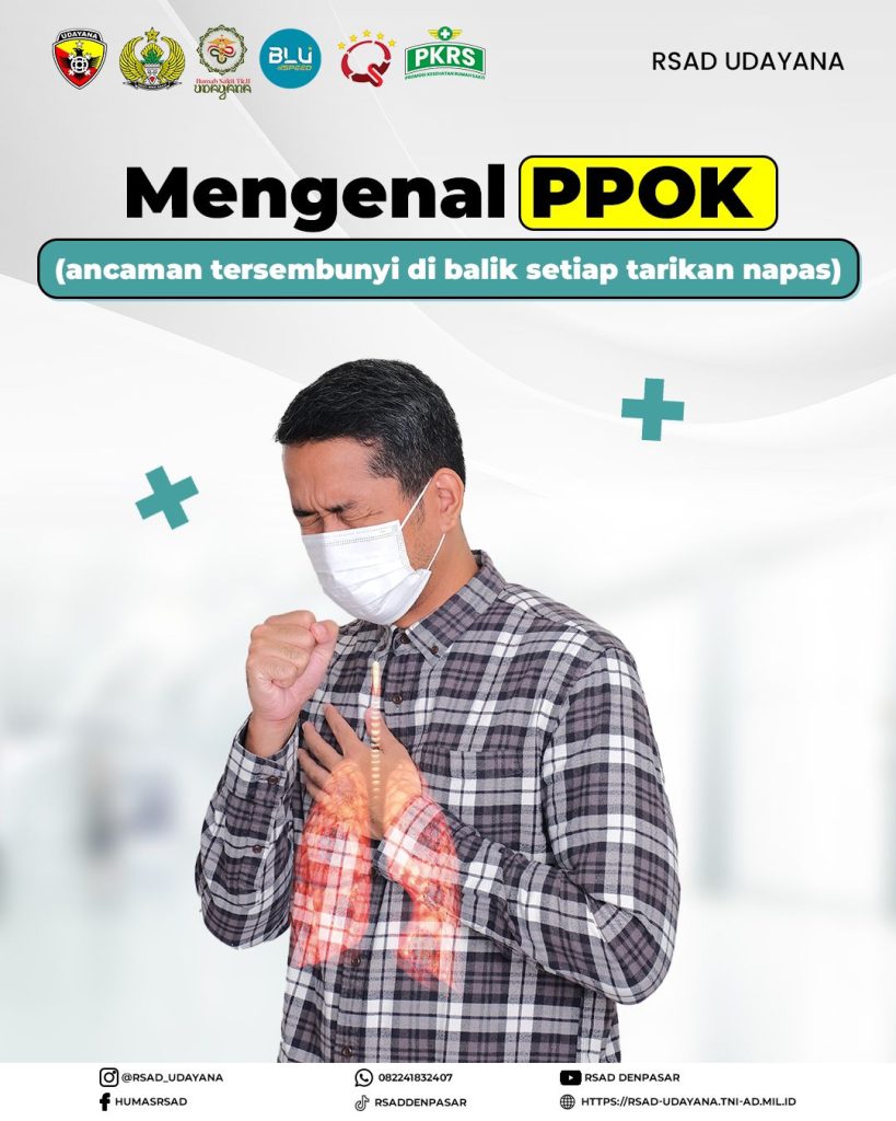 Yuk kenali PPOK lebih dalam!Semakin cepat deteksi, semakin besar peluang memperbaiki fungsi paru dan kualitas hidup.Bila sering batuk kronis, sesak, atau sulit bernapas, segera konsultasikan ke RSAD Udayana. R𝐮𝐦𝐚𝐡 𝐒𝐚𝐤𝐢𝐭 𝐓𝐤. 𝐈𝐈 𝐔𝐝𝐚𝐲𝐚𝐧𝐚 📍 Jl. P.B. Sudirman No.1, Dauh Puri, Denpasar, Bali.🌐 Kunjungi website kami: rsad-udayana.tni-ad.mil.id📩 Email: rsadudayana9denpasar@gmail.com📲 Humas: 082241832407